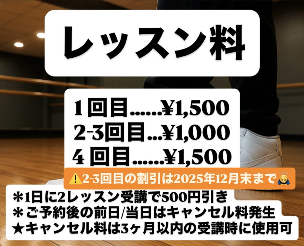 「月一回はソウルダンス!」と習慣にしてもらえるように、2回目と3回目で500円ずつ割引をさせていただいていました。